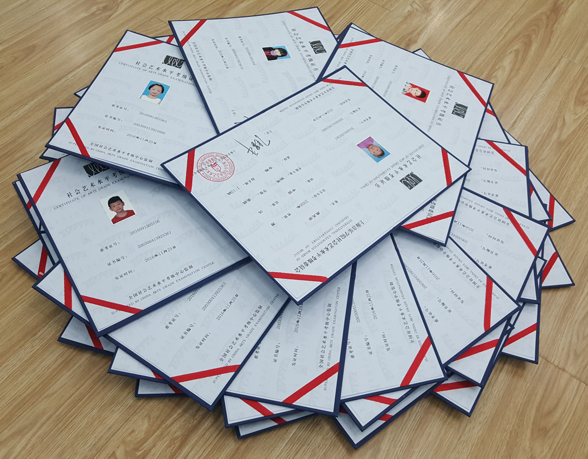 2016年涵皓藝術樂器類考級證書。